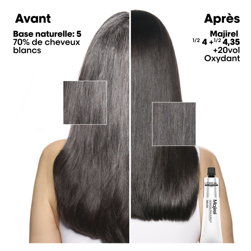 Majirel Cool Cover est conçu pour offrir une neutralisation durable, même sur les bases naturelles foncées. Il garantit un reflet froid profond sans effet terne, tout en préservant la fibre capillaire.